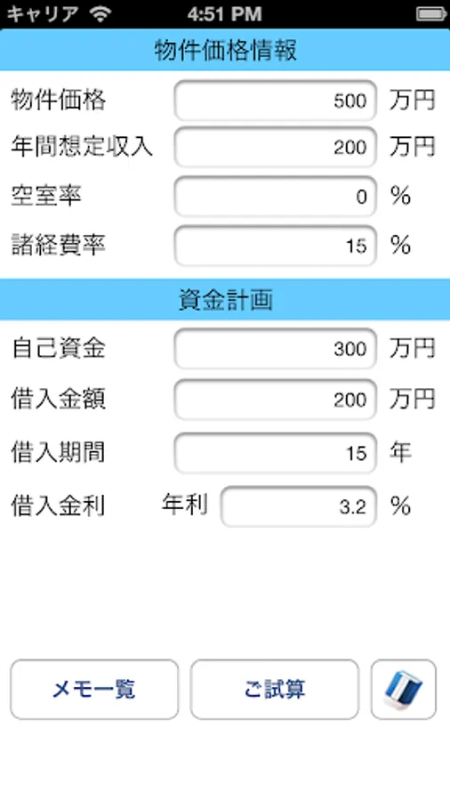 不動産投資や賃貸経営の利回り収益シュミレーションツールです。