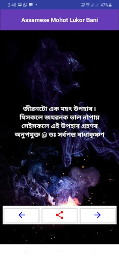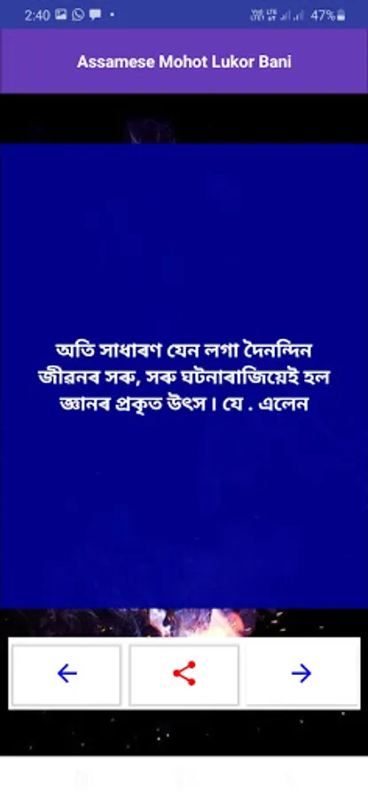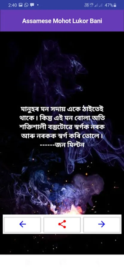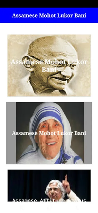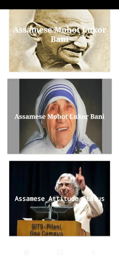 This App contains all the great peoples thoughts in Assamese. This app will help you to get motivated at every point of your life with it largest collection of motivational quotes.