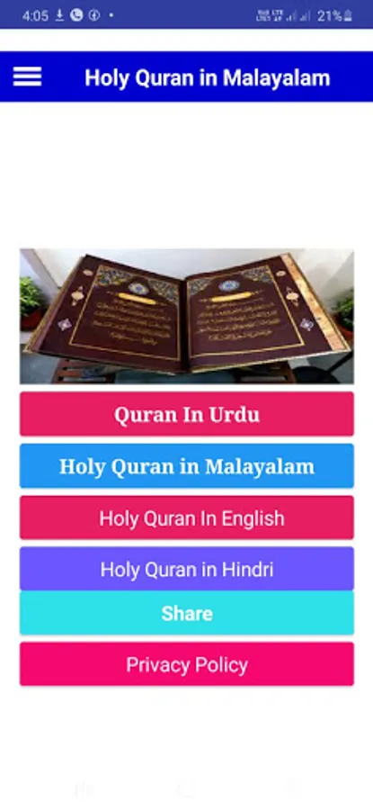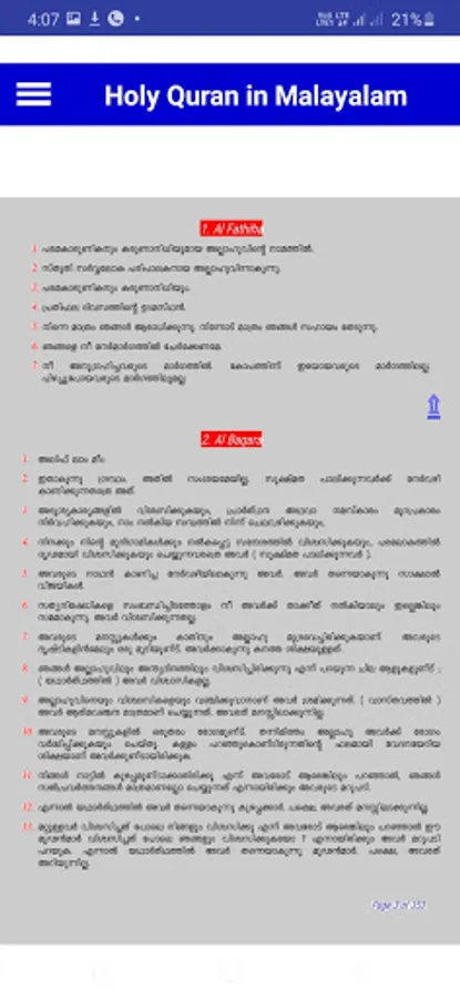 Quran Malayalam app contains all the 114 chapters in Arabic and Malayalam meaning