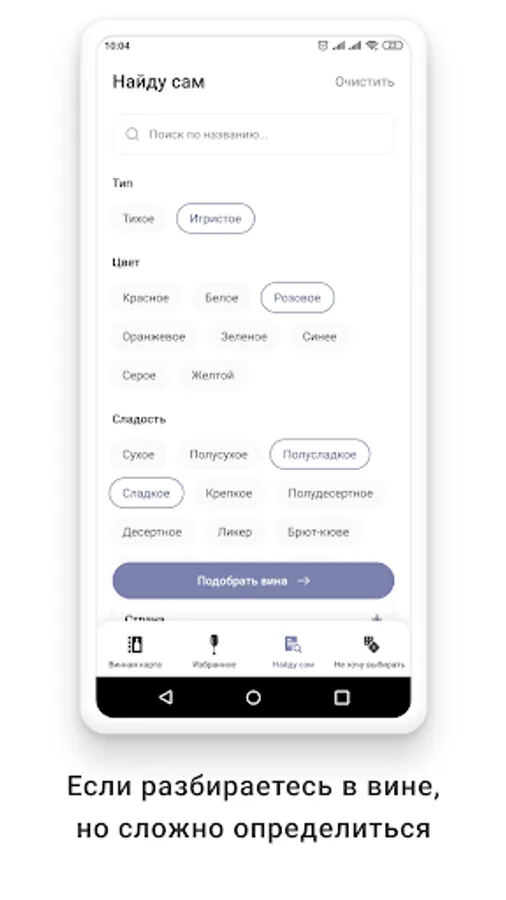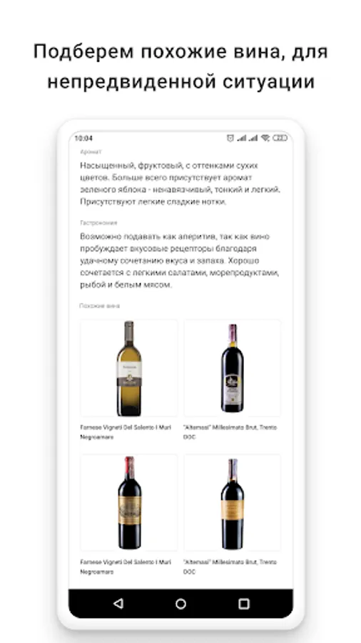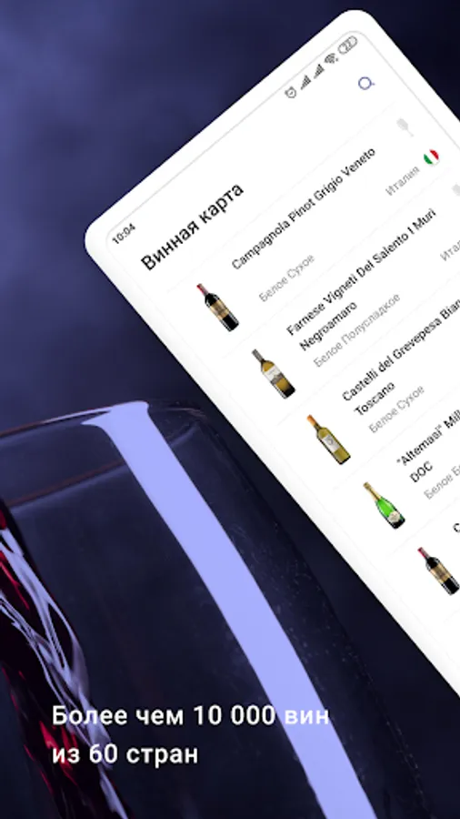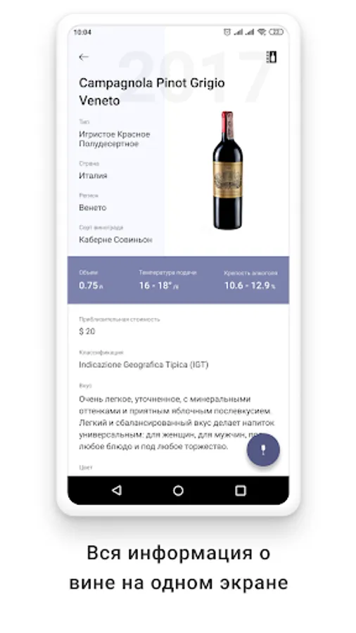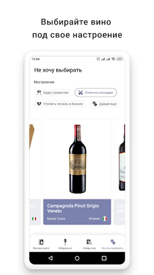 The largest wine database is now available right on your phone. You can choose the wine based on personal tastes, preferences and much more, and the automatic selection mode will offer wine options based on your mood.