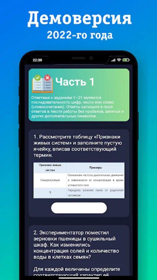 1. Demonstration version of the exam in biology 2022