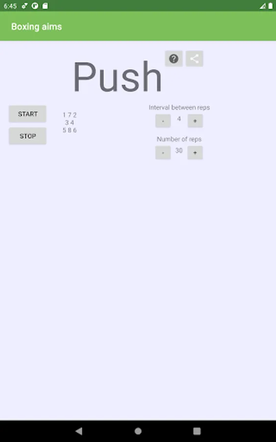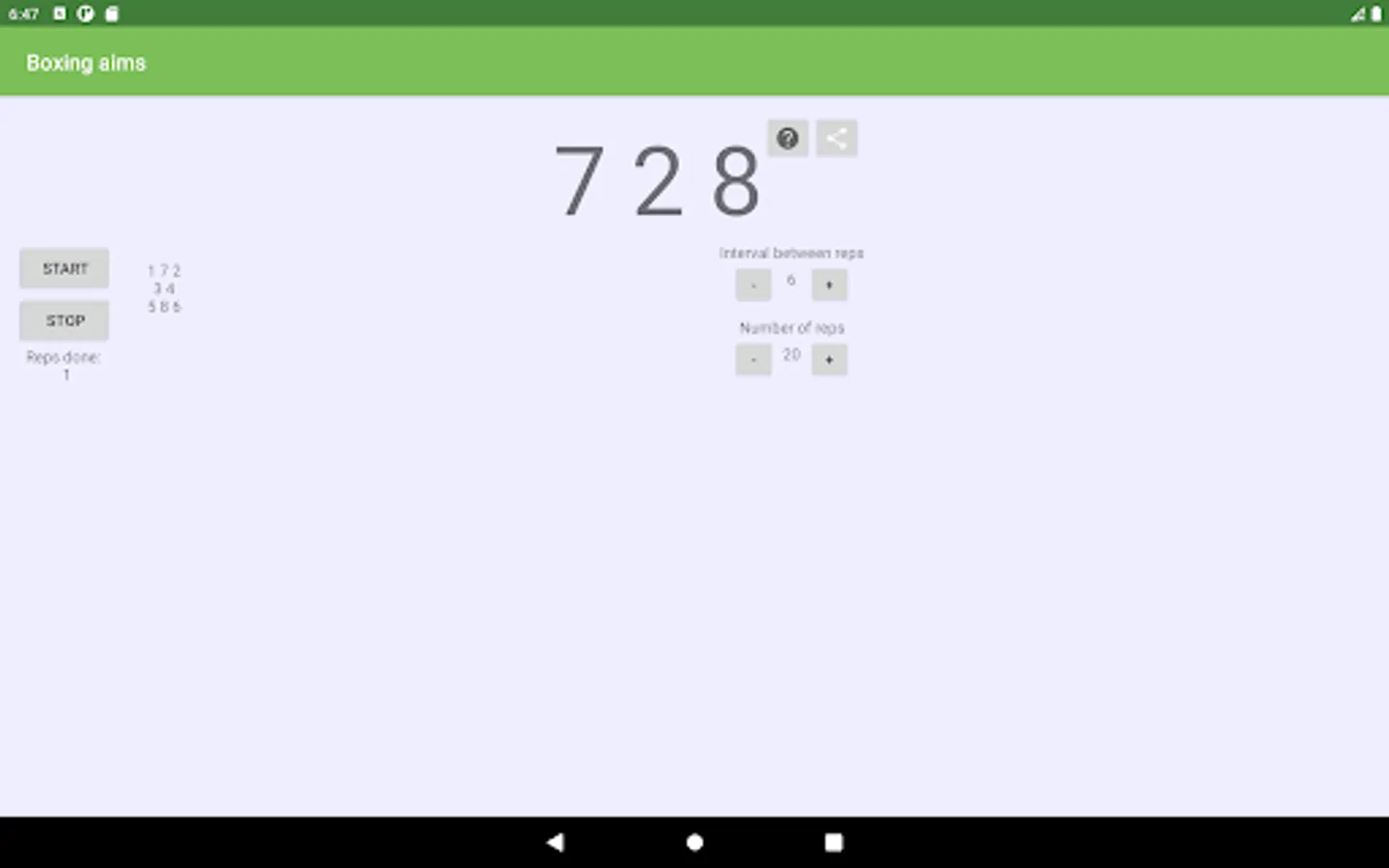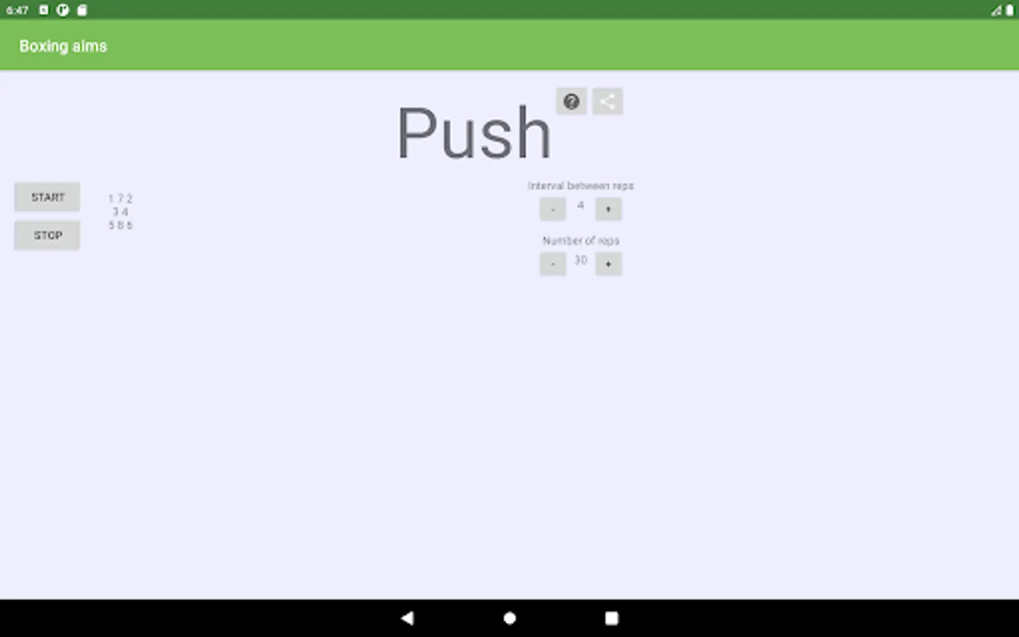 An application for training with a punching bag, we write numbers on the punching bag according to the accepted scheme, set the interval between the series, the number of series and work on the punching bag.