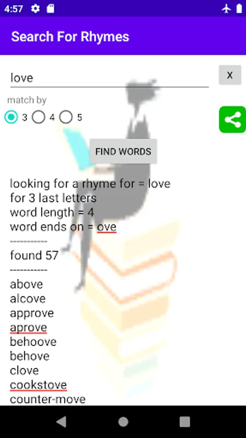 In the upper part of the program, enter the word for which we want to find a rhyme.