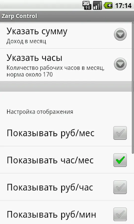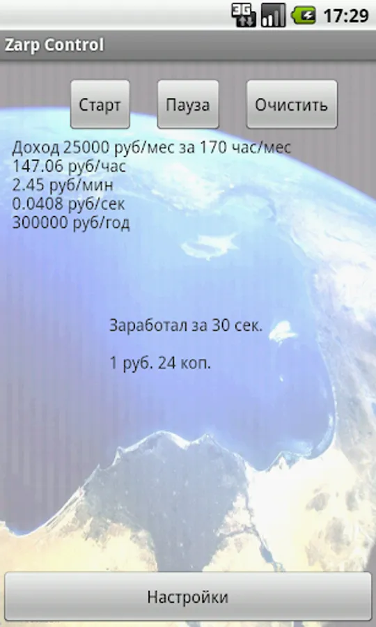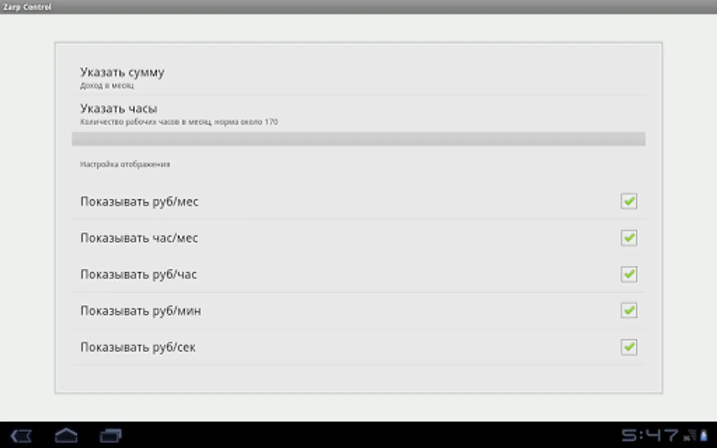 In the settings you specify revenue month, how many hours you work per month. Press start and watch as typed your money. Evaluate your income.