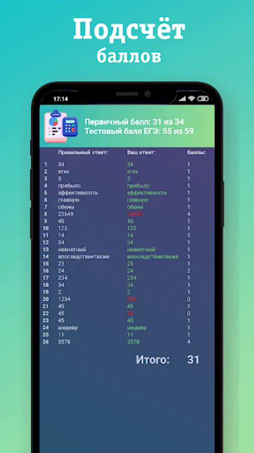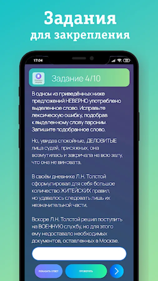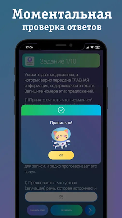 2. Training options for all tasks of the first part with the ability to instantly check the results.
