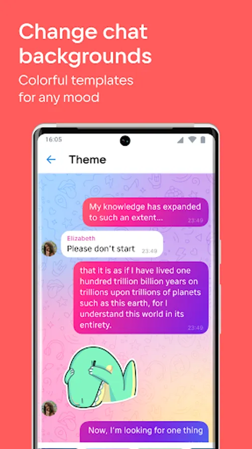 In the messenger, you can also send friends stickers, music, photos, videos and posts from VK. Colorful themes can also be added to your chats.