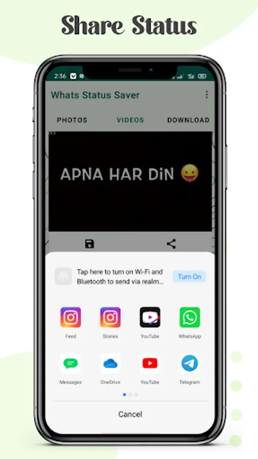 Whats Status Saver App is for Download Whatsapp status images, Video and also it allows to share all downloaded status from app to your friends.
