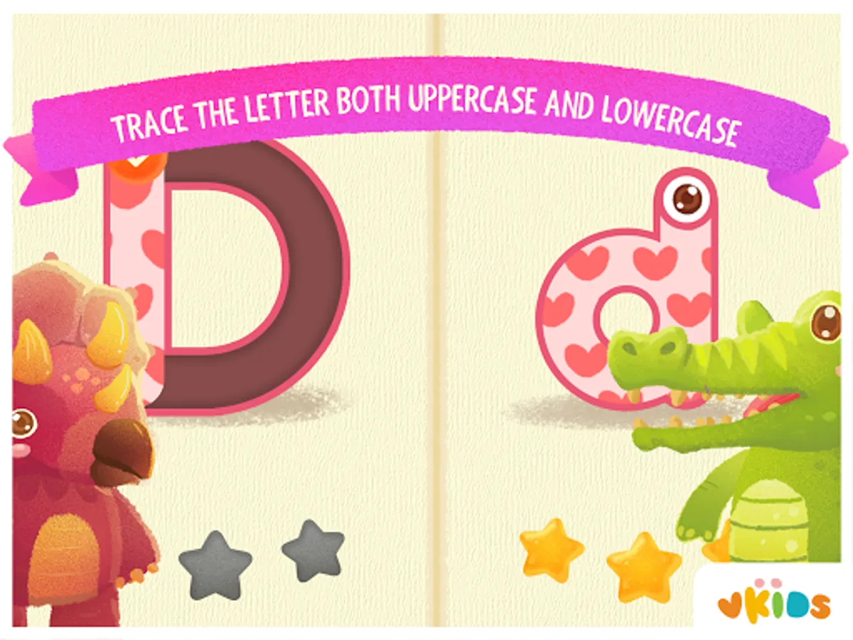 ► Visual learning: break the colored eggs to open the lessons, learn to write the alphabet little by little with animated instructions, and vocabulary lessons for each letter.