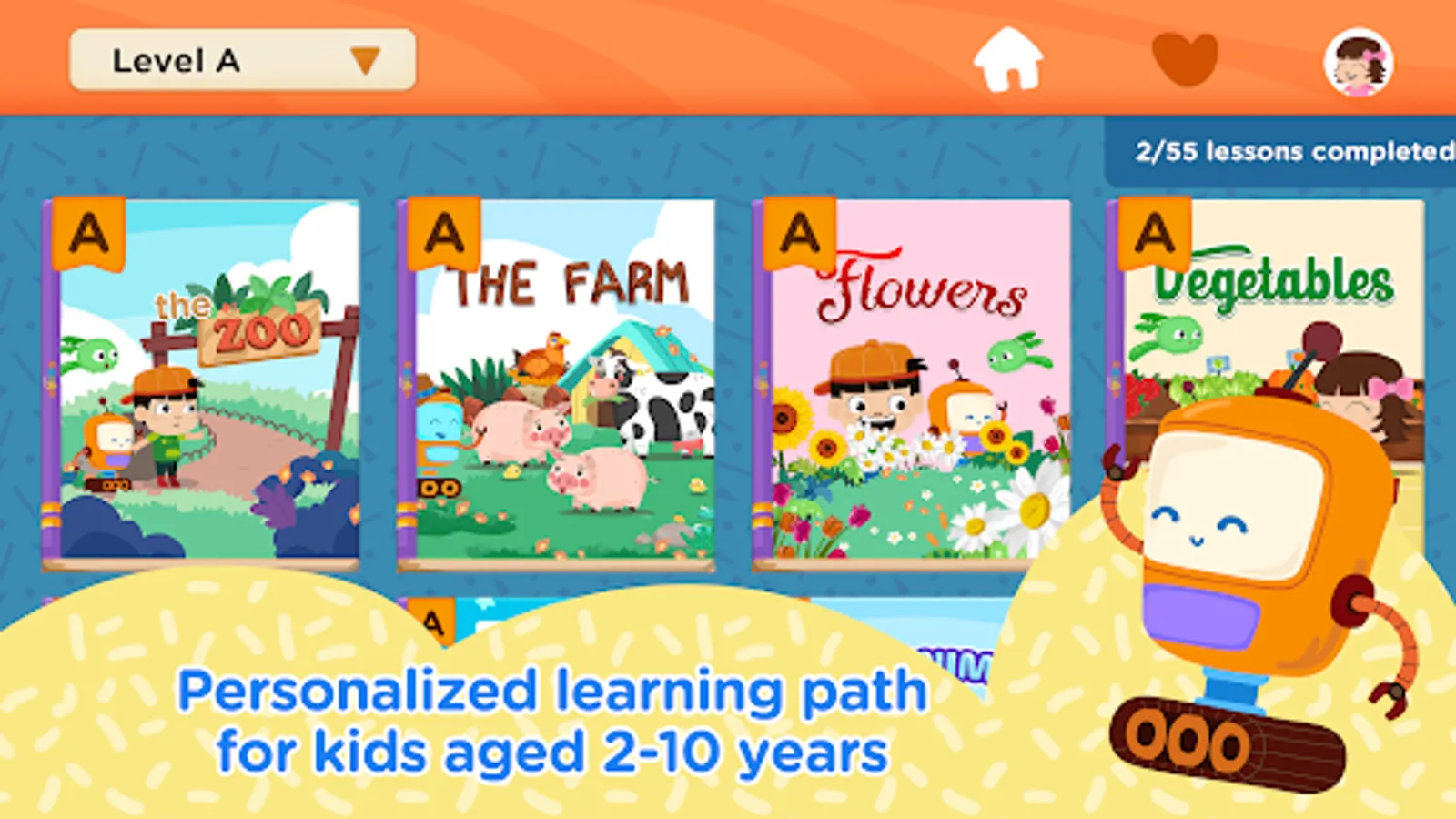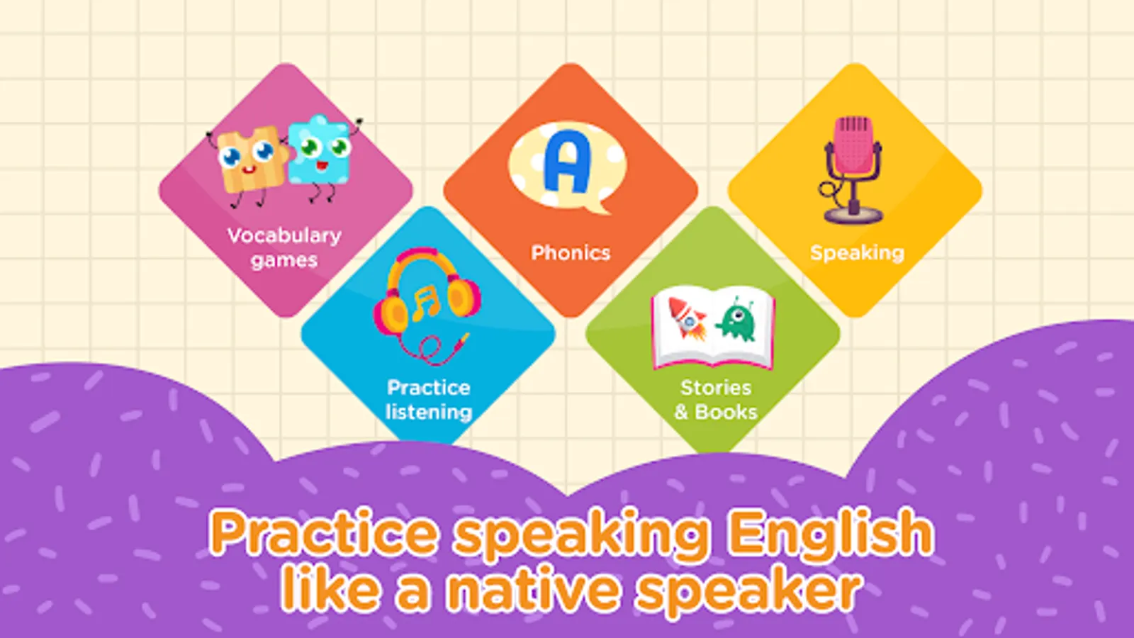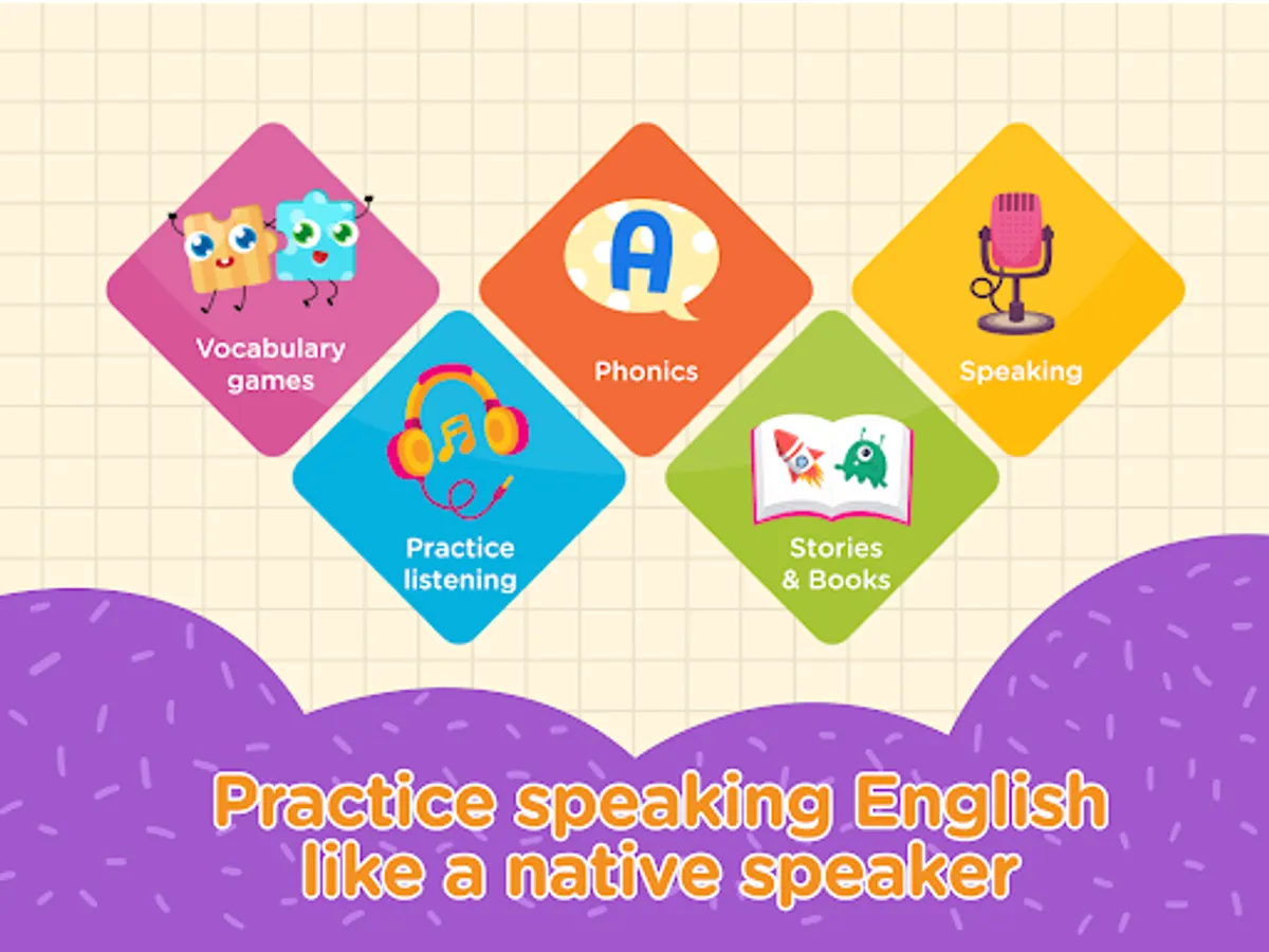 VKIDS EDU - English For Kids is the a playlearning English learning program for kids from 2 to 15 years old. With fun vocabulary games and a rich library of interactive stories, learning English has never been so EFFORTLESS and EXCITING. Vkids Edu will help your kids speak like a native speaker, develop creative thinking through a wide variety of knowledge and flexible usages of words and sentences in daily life.