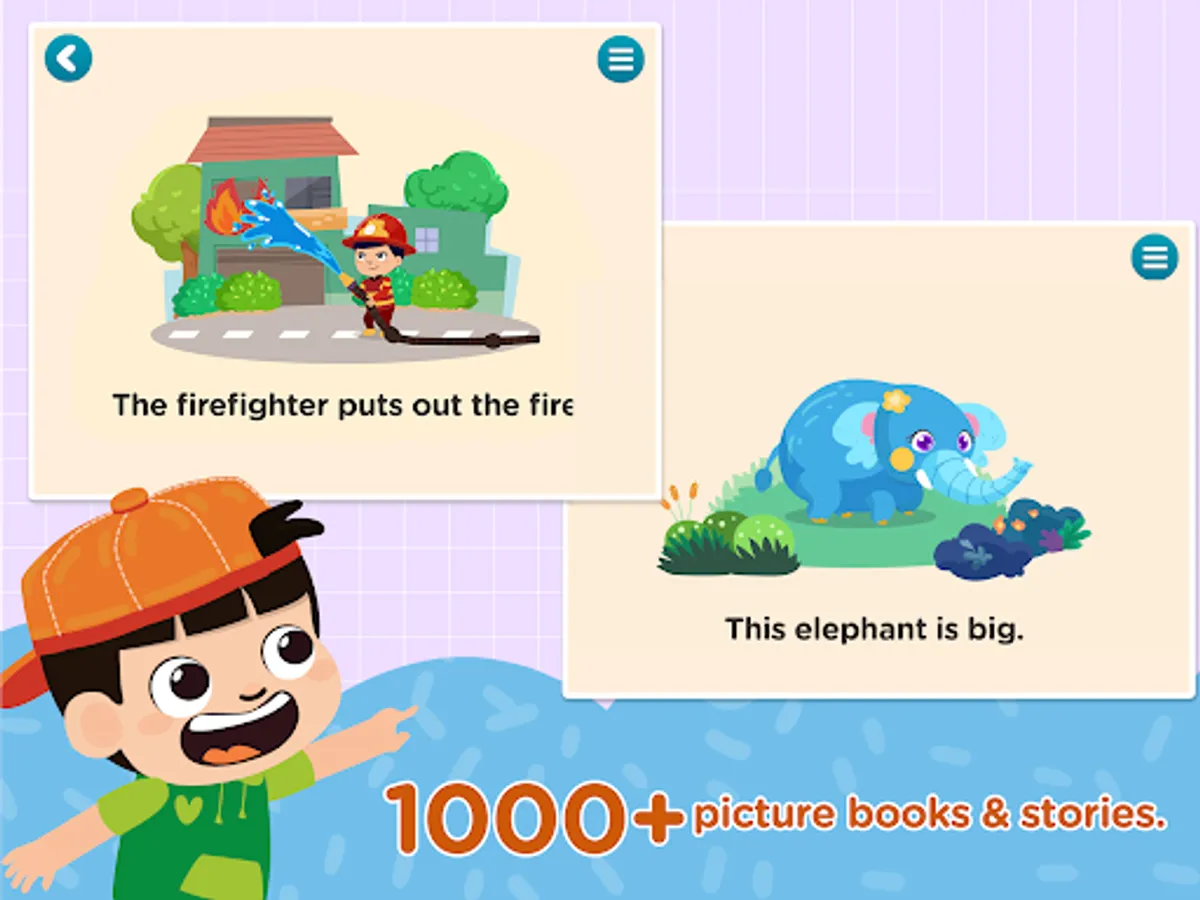 Vkids Edu contains 1000+ stories designed to encourage interactive plays, which helps optimize childern linguistic capabilities. Throughout a story, there are plenty of objects, funny characters for kids to interact with and learn about their names and proper pronunciations. Such interactive learning method is proved to effectively improve young learners' ability to learn and stimulate their imagination.