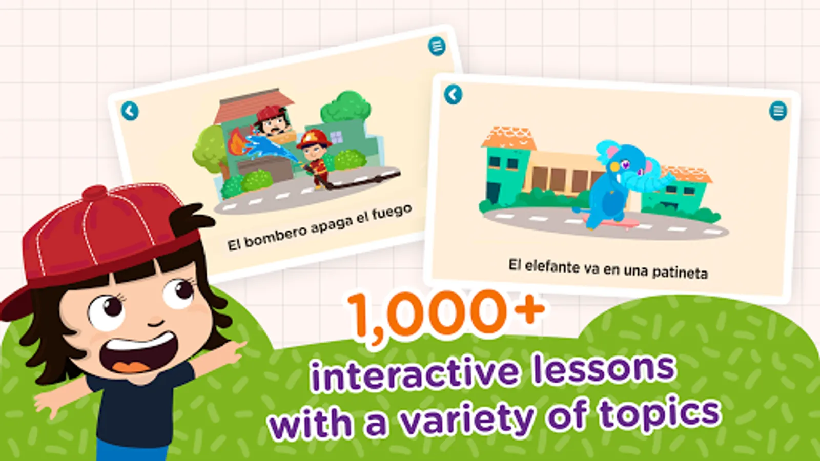 Welcome to Vkids Español - Spanish For Kids the leading digital Spanish academy for kids aged 2-10, where your little beans can explore their passion and learn with instant, unlimited access to 1000+ high-quality interactive stories, 500+ interesting vocabulary learning games and 9000+ cutely designed vocabulary flashcards.