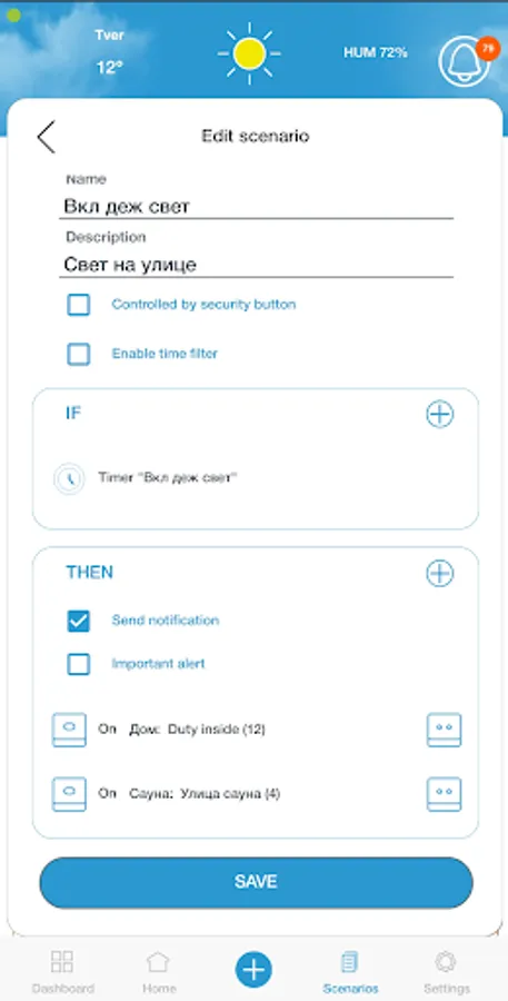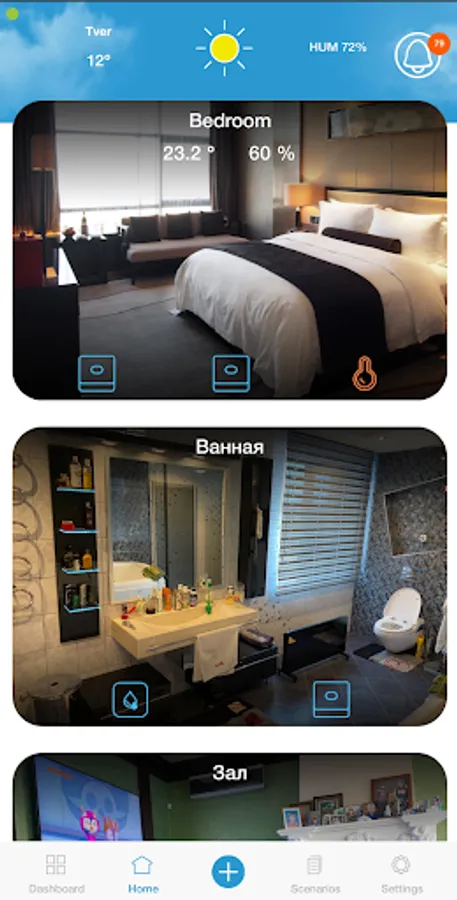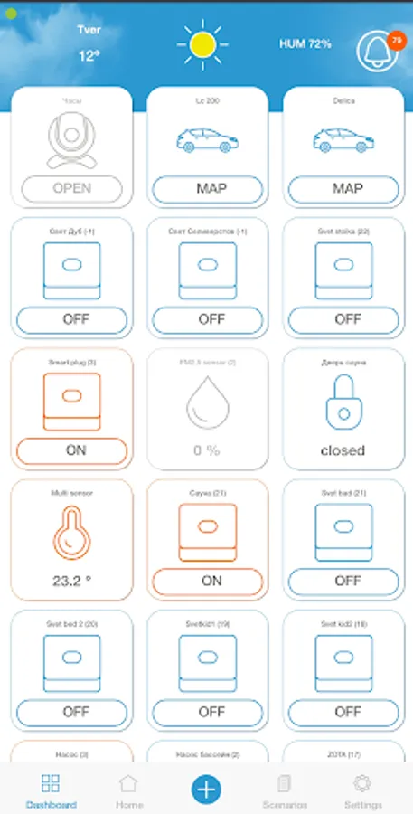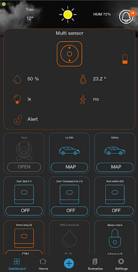 View sensor statuses and remotely monitor equipment, configure device interaction scenarios, watch real-time video from surveillance cameras or view archived recordings.