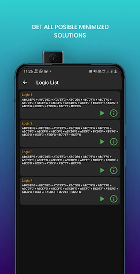 Boolean Algebra lets you use your android device as boolean problem solver that can solve Karnaugh map , Minimize expression , Generate SoP & PoS , Circuit diagram and much more.