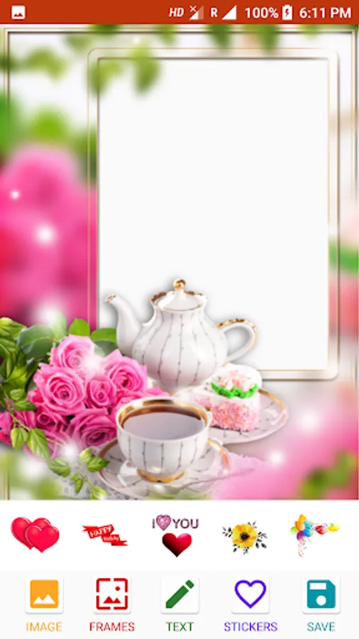Select a frame and choose photo from your gallery then save and share Also you can add Text and Sticker. Additional frames for kids.