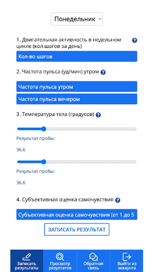 This application allows you to analyze your activity over the past 7 days. Enter the requested data daily, and after 7 days the application will give the result!
