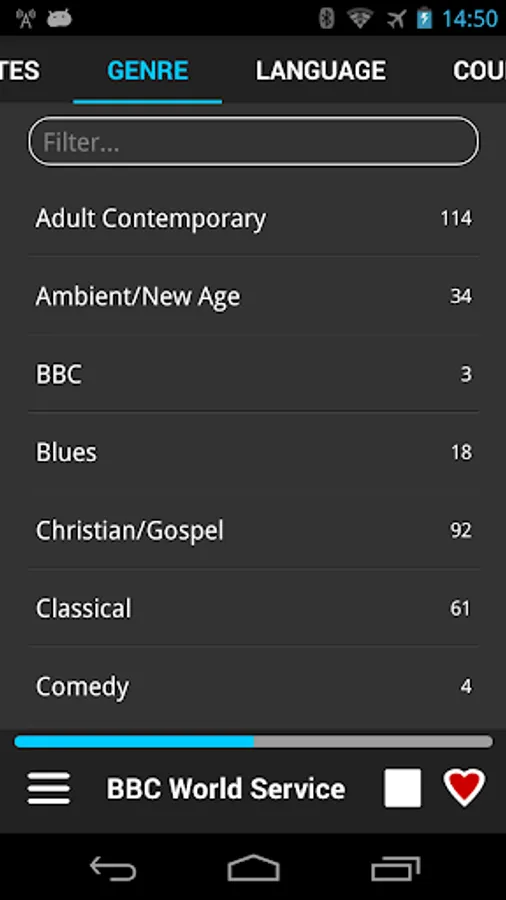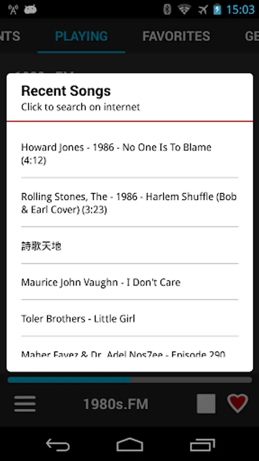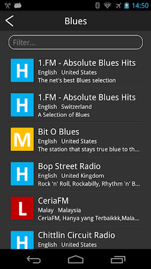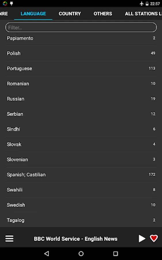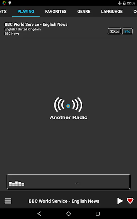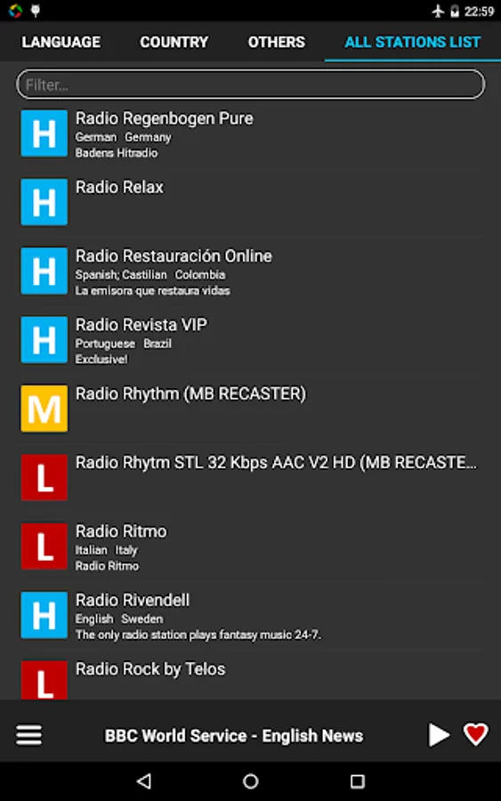 This is a free Internet Radio application for the one who want to listen the on-line(live) radios. The build-in stations are over than 10,000. You can browse the stations by genres,languages,countries and others. And filters are supported by all the categories. You can add stations to favorite. checking your recently played stations. Searching the current song on the internet. Sleep Timer also added for your.