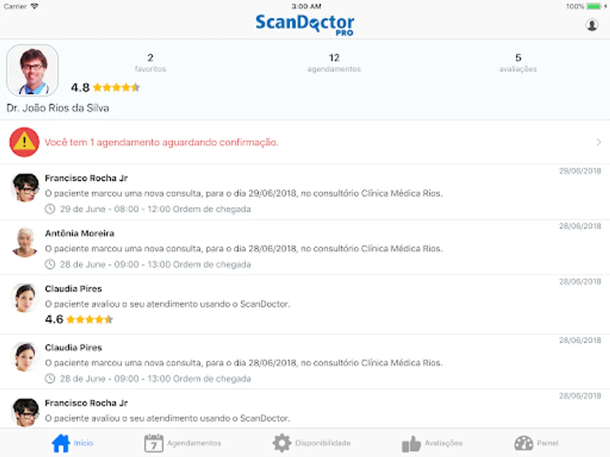 ScanDoctor is the newest way to schedule appointments online. In it, patients look for health professionals and book appointments at their clinics. The proposal is to facilitate work in clinics and in the daily lives of health professionals.