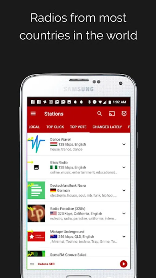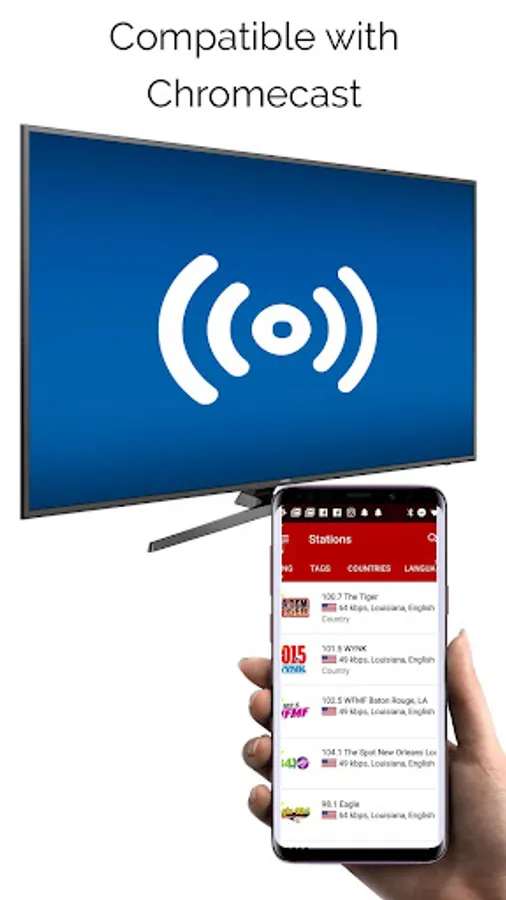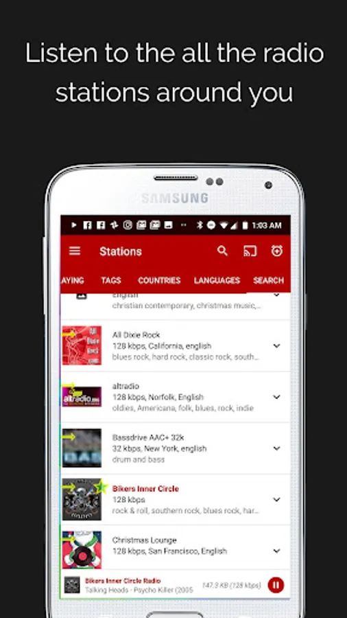 - Search stations by tags, like music, period, news, style, musical genre, etc.