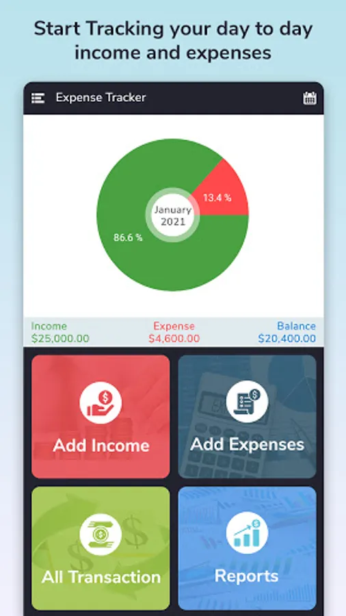 Expense Tracker - Money Manager & Budget shows your budget and expenses by a pie graph so you can easily see the balance of your expense against your budget quickly.