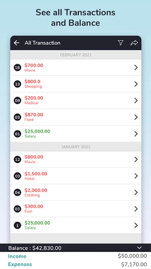 Expense Tracker - Money Manager & Budget can quickly and easily track your income and expenses, which will help you avoid making accidental expenses.
