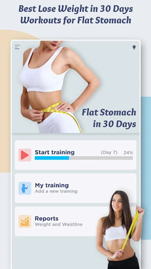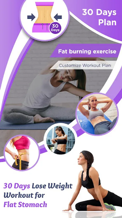 30 Days Lose Weight Workout for Flat Stomach apps offers training like Female fitness exercise, Core workout, Fat burning workouts for women and HIIT workouts for women.