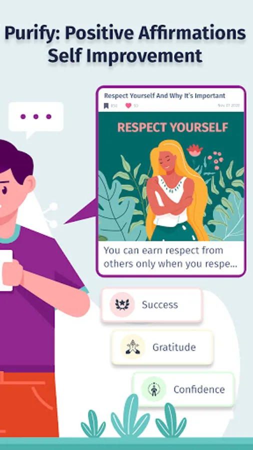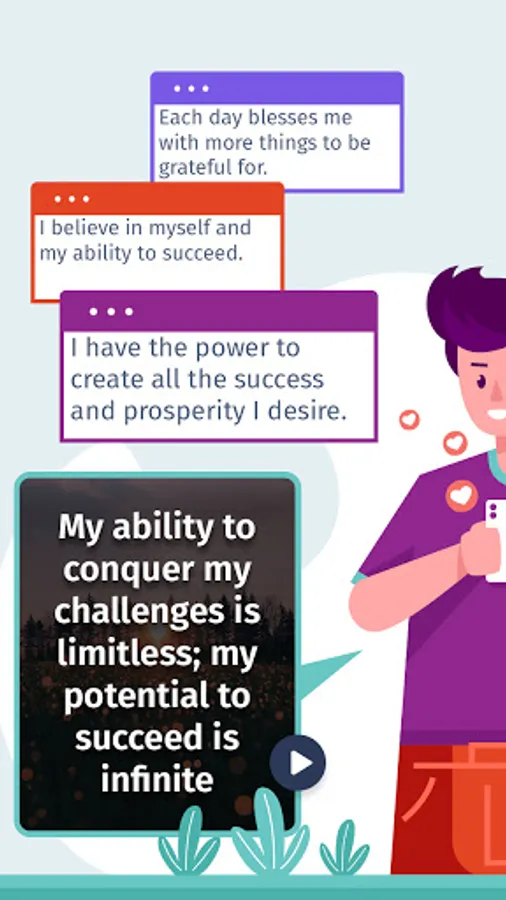 - Affirmation of the day with notification, you can share affirmation card into social media
