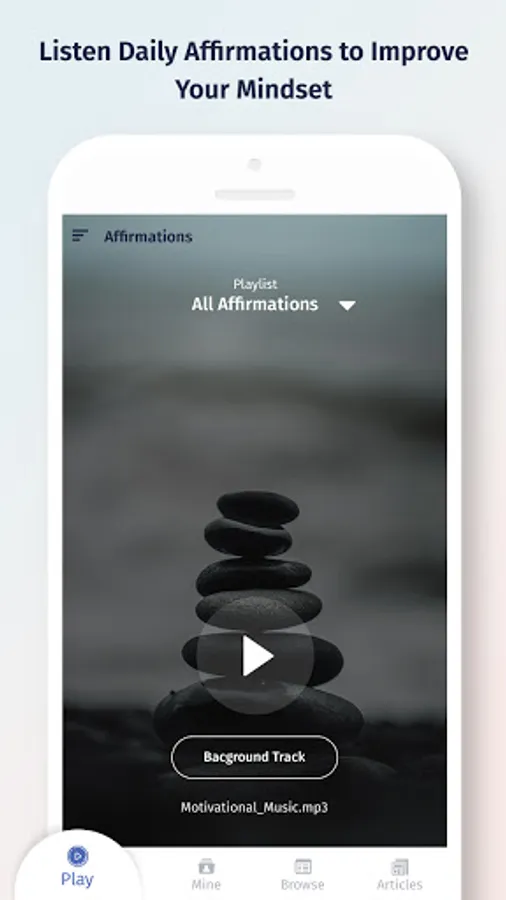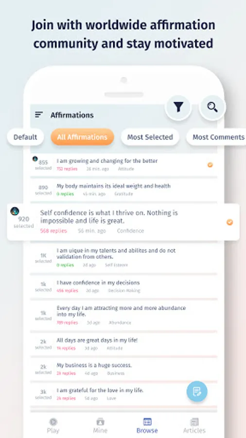 - Make your affirmation list and select affirmation from community, default categories and affirmation of the day.