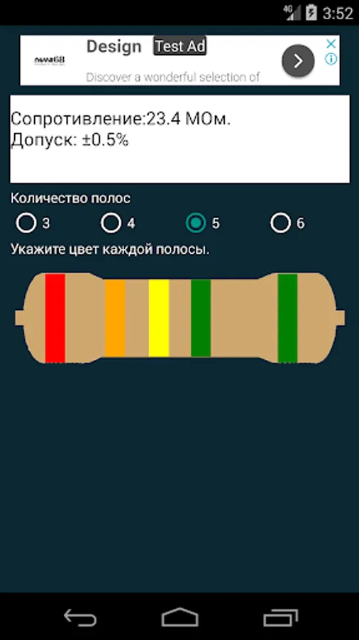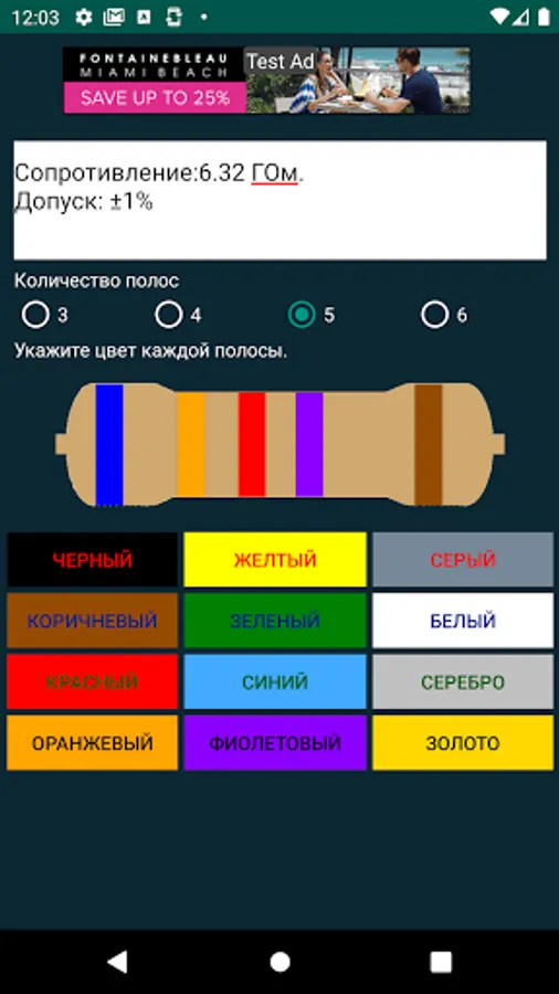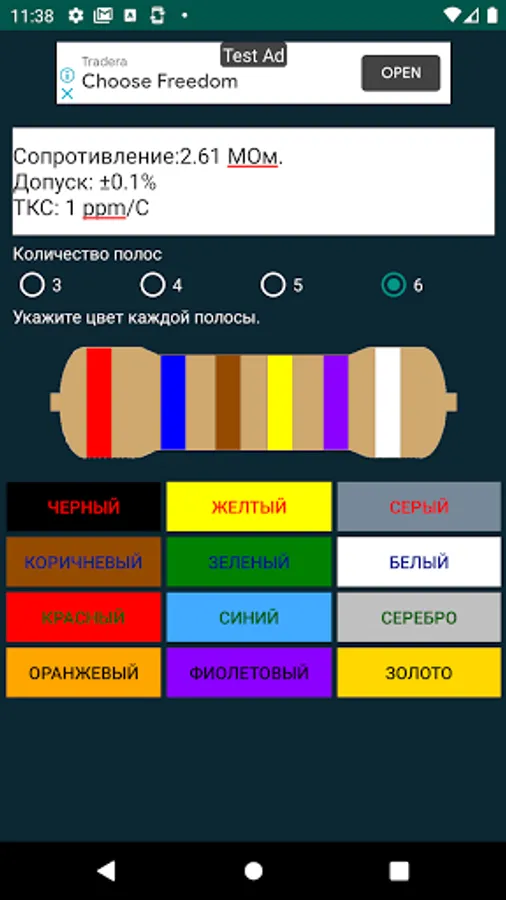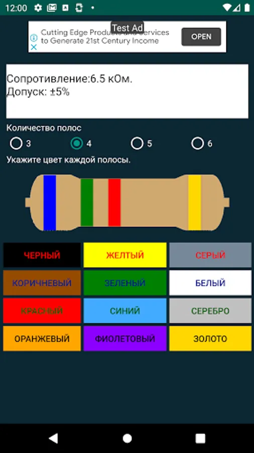 The Resistor Color Code Decoder is a handy tool for electronics engineers to quickly determine the value of any resistor. Just select the colors that match the resistor strips on your screen and the app will calculate its value. It is also possible to select standard resistor values and see their corresponding colors. This app is easy to use, intuitive and comes with a colorful interface. It will be useful for both experienced electronics engineers and beginners. Download our application and work with resistors conveniently.