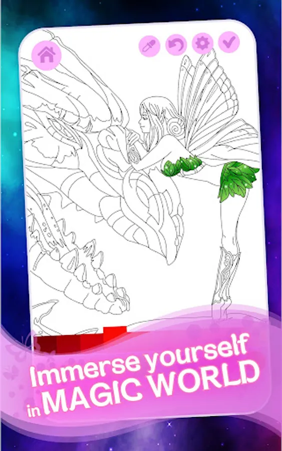 You don't need any special skills, just start painting, be creative and impress your friends and family with your amazing skills by using this fantasy coloring book. These free fantasy games let you provide enjoyable time and relax the stress of the day. Also coloring pages with magical сreatures increases your creativity and enjoy the time provided.