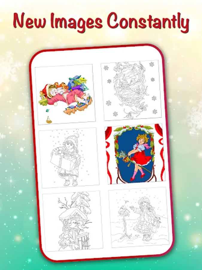 ◦ Contains more than 100 coloring pages of Santa Claus, Christmas tree, gifts etc.