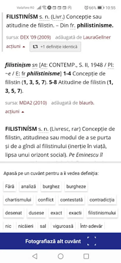 Application for people who want to search for words in dex without typing anything. Open the application, take a picture to frame the word you don't know and see the definition you need.