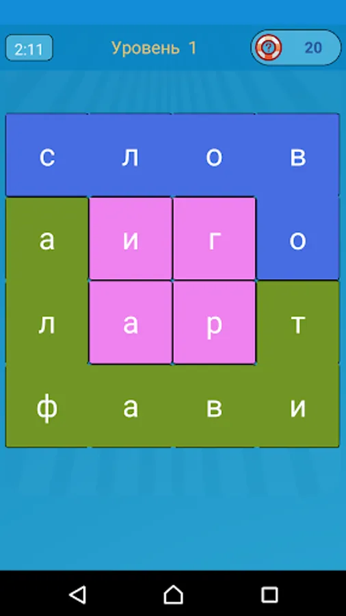 On the square playing field chaotically arranged letters. Find all the words, highlighting the letters that stand side by side, so that the guessed word painted over the whole square. Not all, but only the hidden word fit to fill. For rapid passage level are tips that you can use at any time.