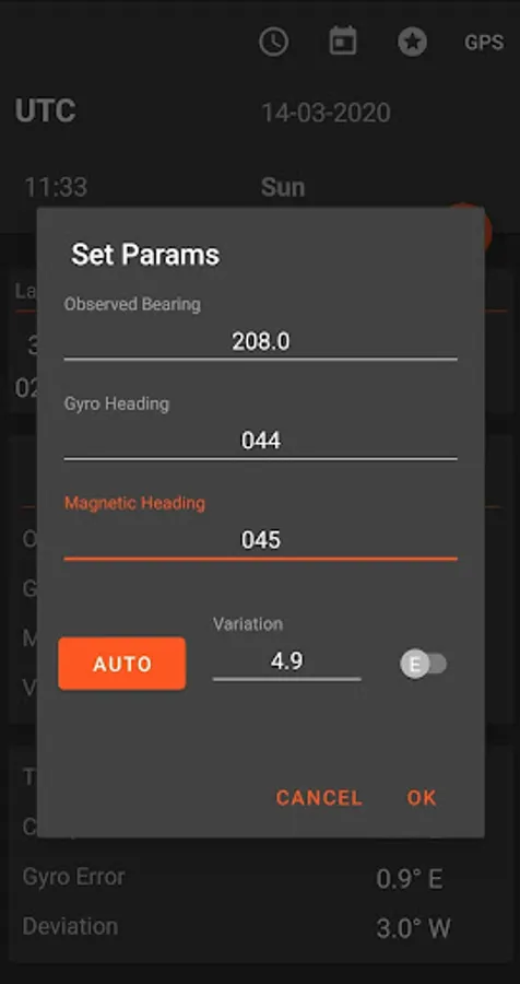 Once the azimuth is calculated, entering gyro bearing, heading, magnetic heading, variation will