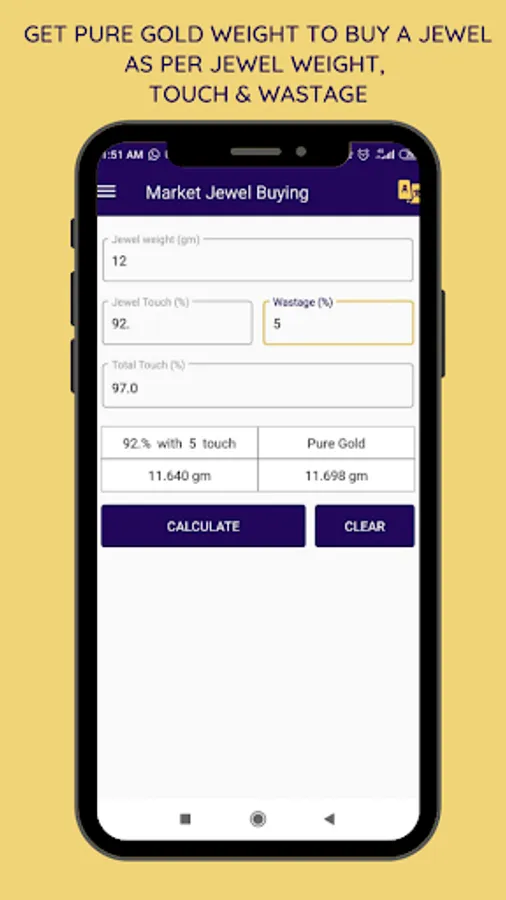 Main features of this app is Melting process , Jewel & Gold Rate Calculator.