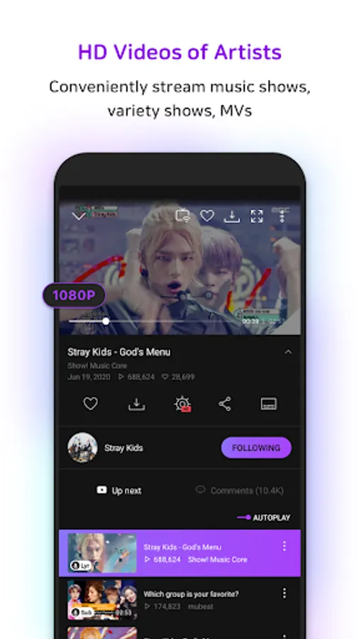 Watch HD videos of your favorite artists like BTS, BLACKPINK, TWICE, Stray Kids, TXT, (G)I-DLE, SEVENTEEN, ATEEZ, ITZY, NCT, and GOT7, all in one place!