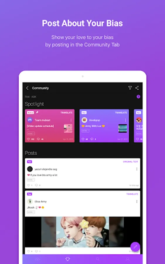 Express and share your love for your bias with like-minded global K-POP fans. As the saying goes, the more you share, the more you grow!