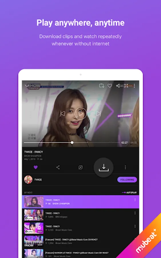 Mubeat has everything, from Focused Cams, official MVs, music, and variety shows from various Korean TV channels to Mubeat's original content videos~
