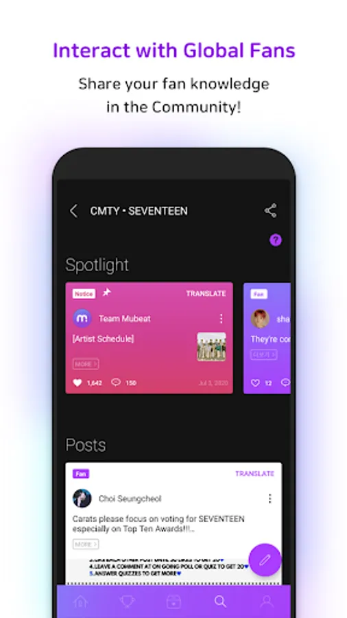 -Use Mubeat’s Community to interact with global fans, share your artist's info and how you stan them!