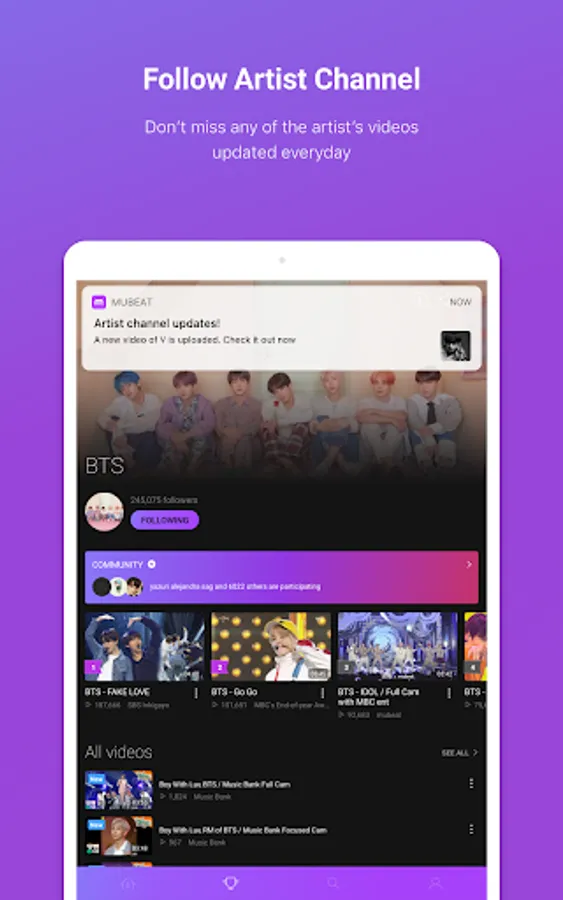 [Artist Channel] Follow artists and receive notifications on their latest ✨HD KPOP✨ videos from various Korean TV channels!