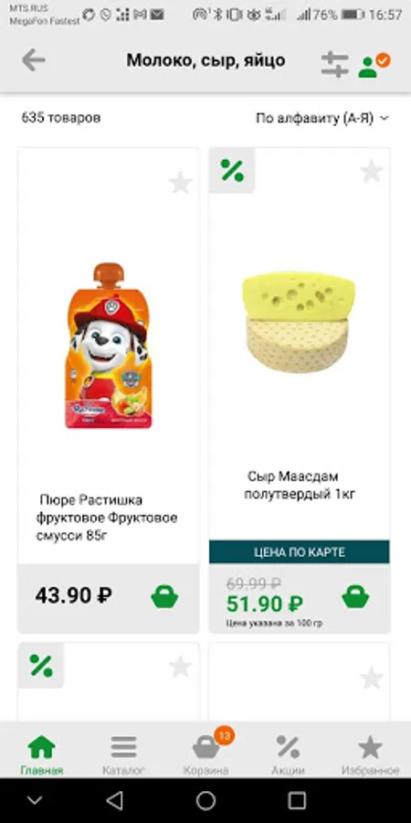 The Major League Online application is an online grocery store that will save you time. You can order groceries delivered to your home wherever you are. Place your order during your lunch break, and our courier will deliver the groceries when you are already at home. Delivering food home is truly convenient. In addition, you can pick up the assembled order at any "Higher League" store convenient for you, for example, on the way home from work.
