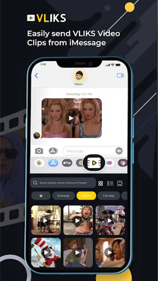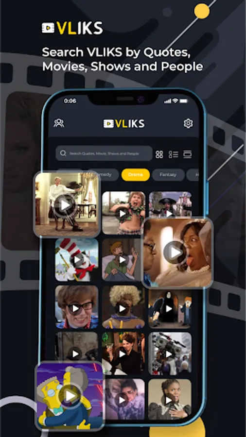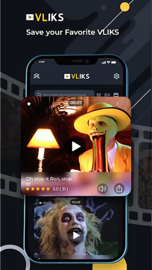 Simply download the VLIKS app, register, and easily search and share short audio-based video clips from your favorite movies, TV shows, video games, people, etc.