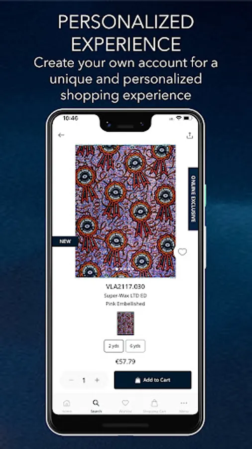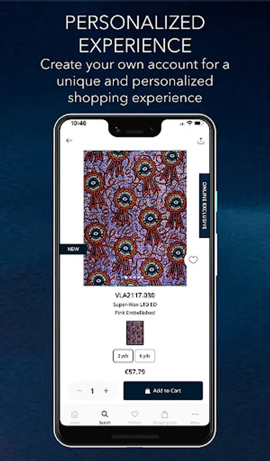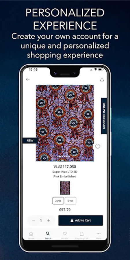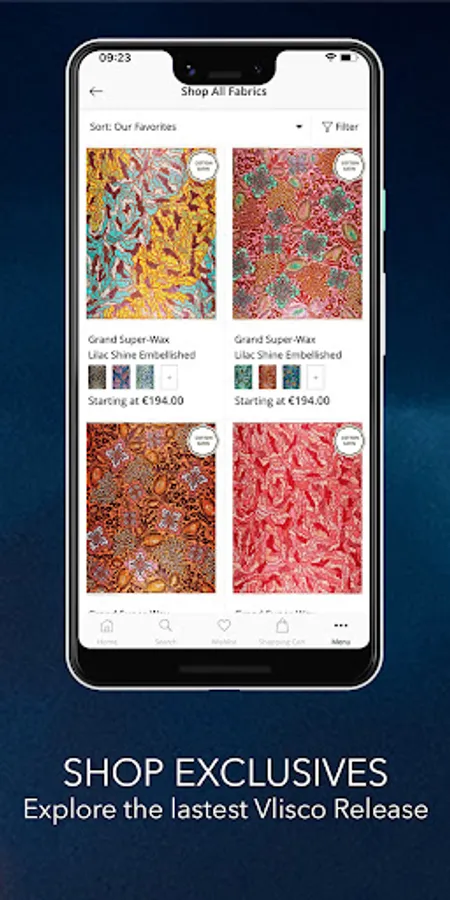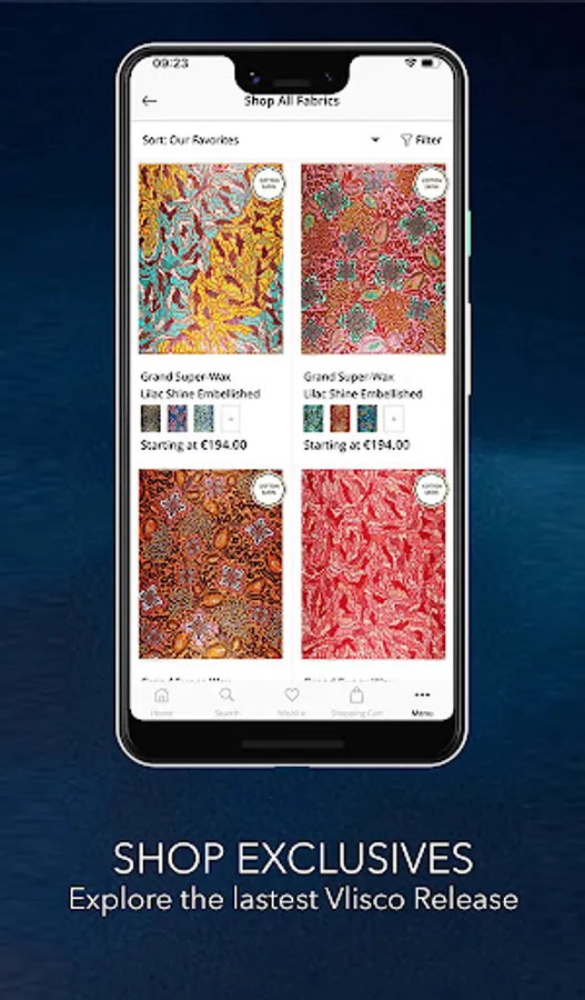 Experience the world of Vlisco! Shop our luxury fashion fabrics directly from your smartphone. Be the first to discover our different fabric types and latest innovations. Save your favourite exclusive designs to a wish list and add them to your shopping cart whenever you are ready. Download the Vlisco app now to enjoy a unique and personalized shopping experience.