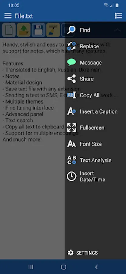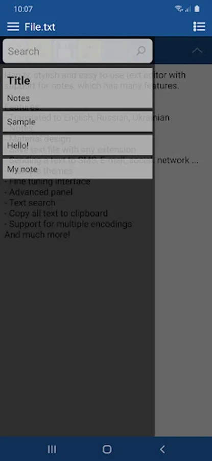 With this text editor you can view and edit the contents of the files. Also, it is possible to save the text as a note for later viewing and editing in this application.