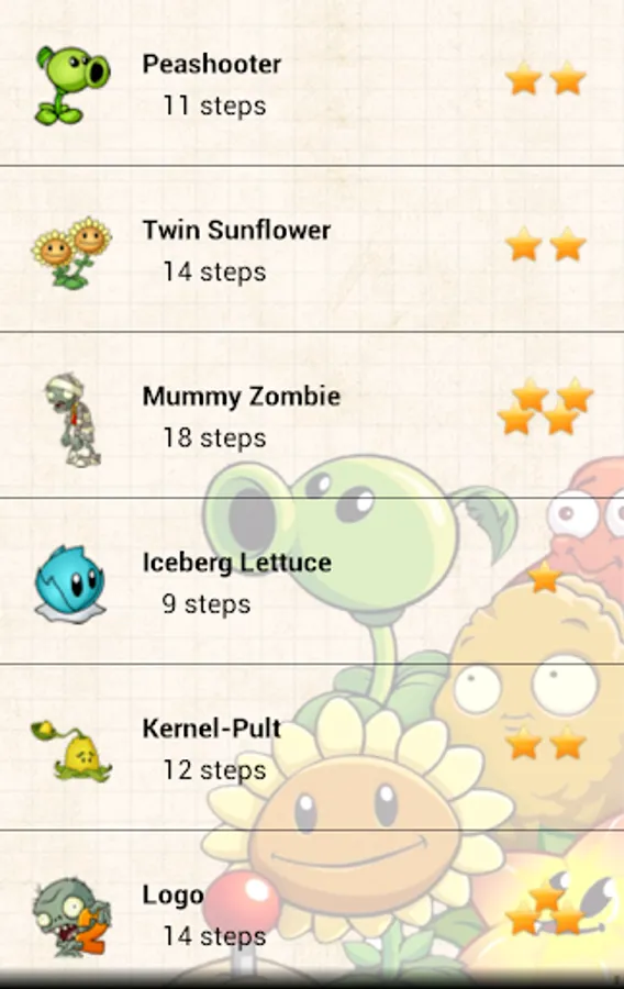 • 5 levels of difficulty (by number of stars) to each lesson. Choose your level!