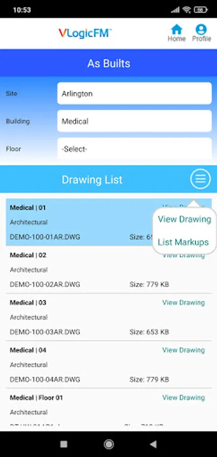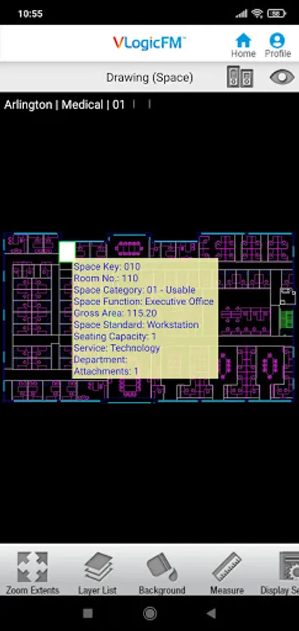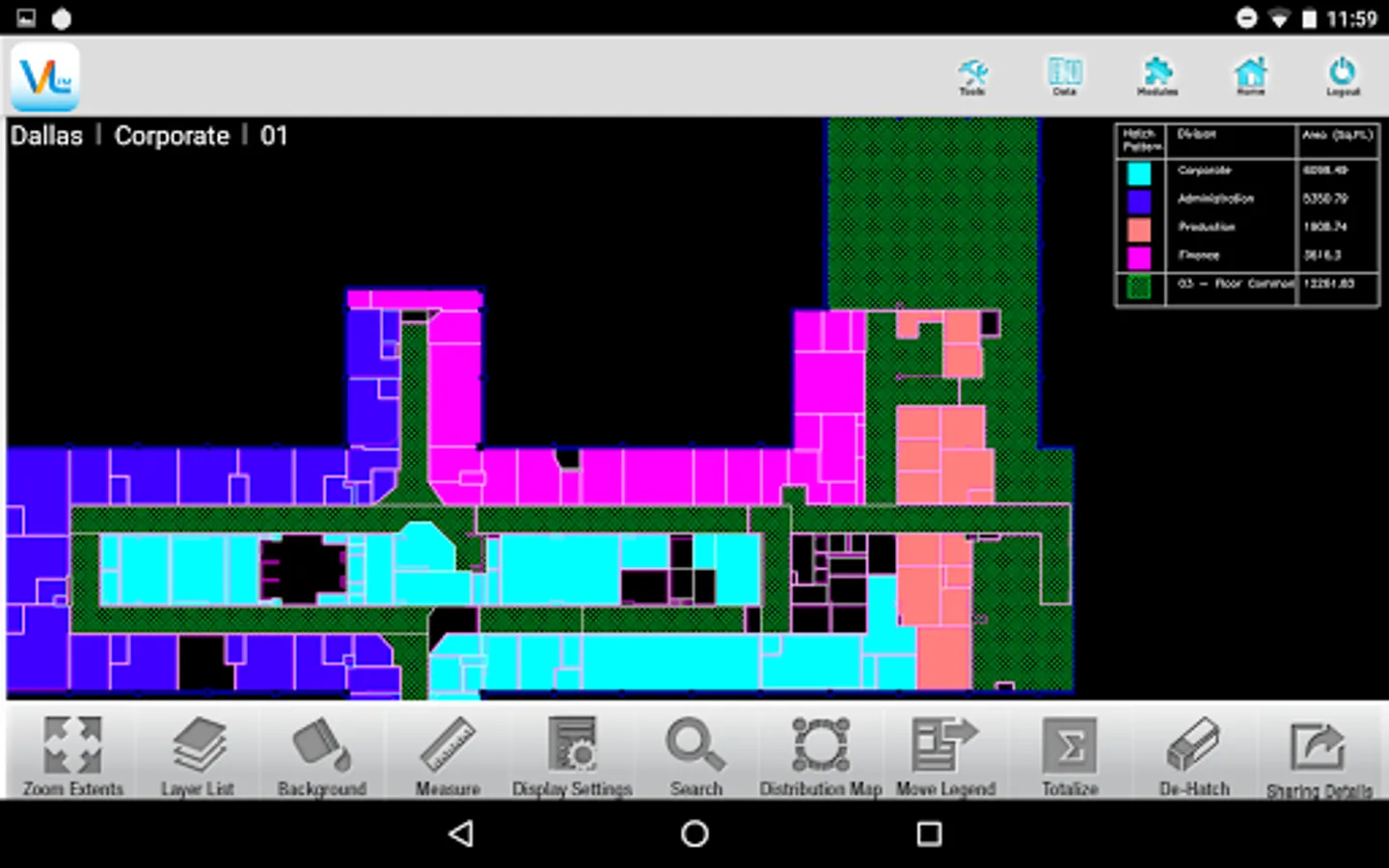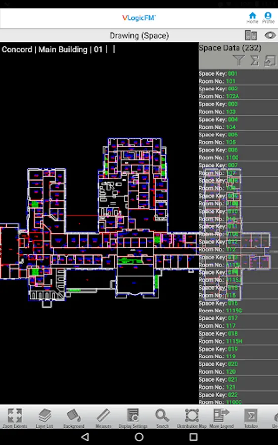 The VLogicFM mobile platform provides a physical synchronization link between the desktop VLogicFM application and the handheld Tablets running VLogicFM, which allows facility managers and others within the organization to move about the facility with all the necessary facility CAD drawings and data needed to carry out a vast variety of tasks.