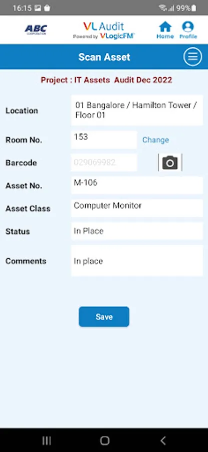 VLAudit App enables users to audit the assets in their organization by scanning barcode tags attached to the assets using mobile device. It allows the users to simply scan barcodes to find the status of assets, to identify missing or misplaced assets, to retrieve maintenance information of the Assets with the help of Barcodes. Either Barcode Scanner or Camera can be used for scanning the barcode. It helps to make sure that the assets are in-place, data is complete, current and accurate.
