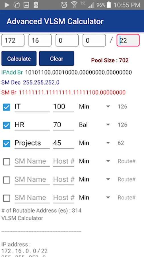 2 - Advanced conversion (VLSM Calculator)of the subnetmask with the possibility of dividing the IP address into five doubts as one of the sections you need in the actual work environment, such as the section of the department of Human Resources and the department of servers and the department of investigations and the department of settlement and other examples.
