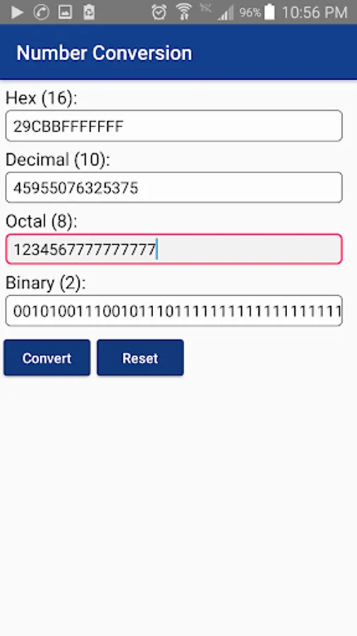 3 - This application also includes the conversion between the numbers hex, decimal, binary, octal.