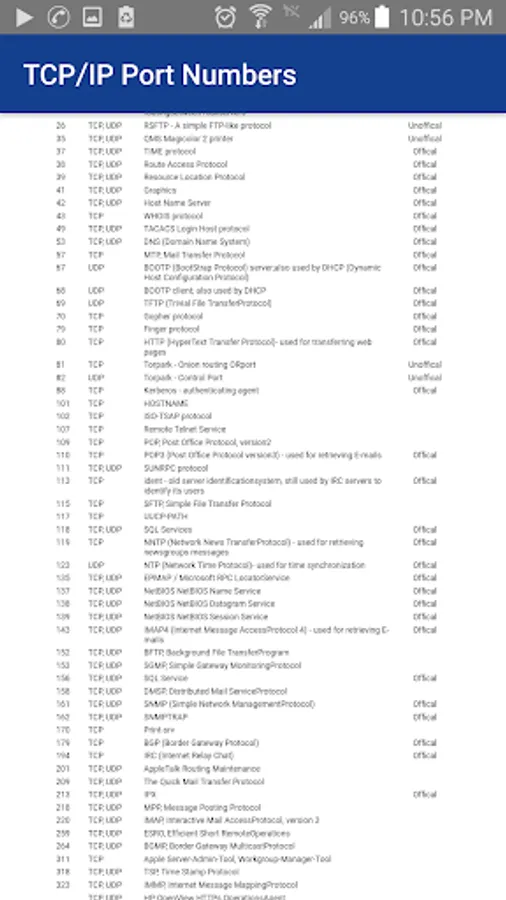 4 - Also important information about the port numbers and protocols used of TCP/IP.