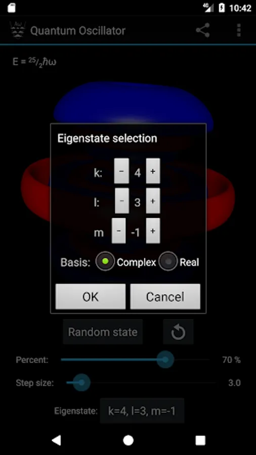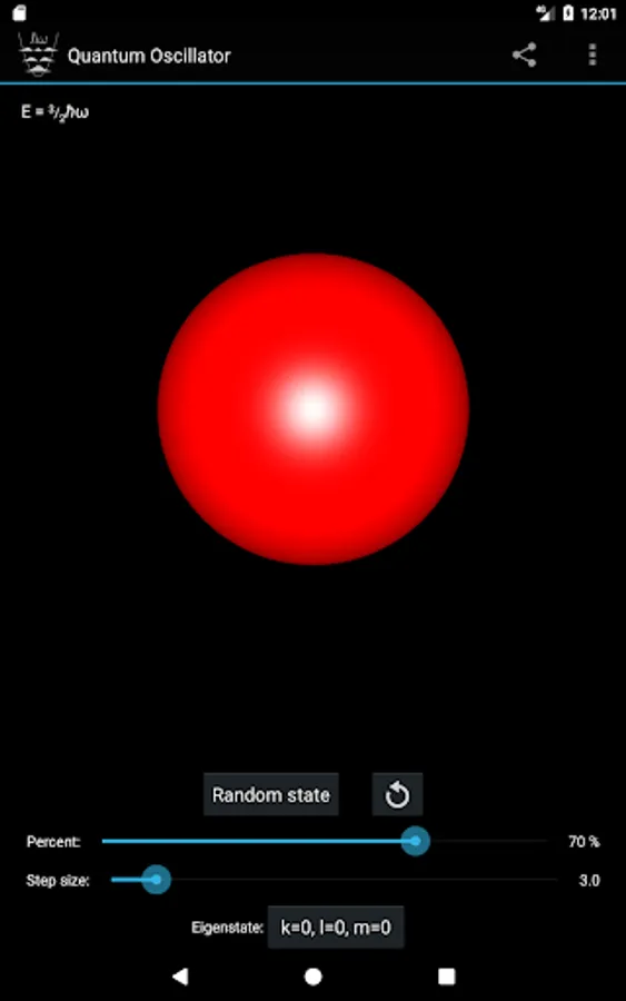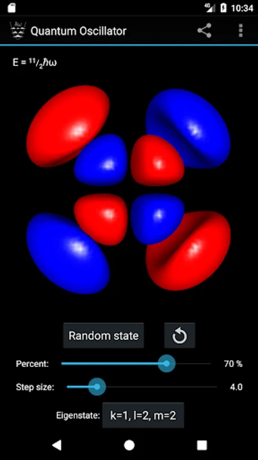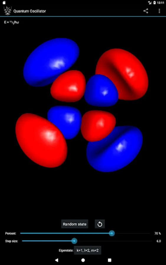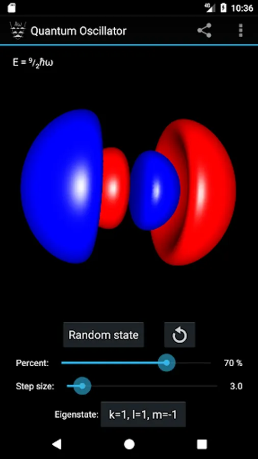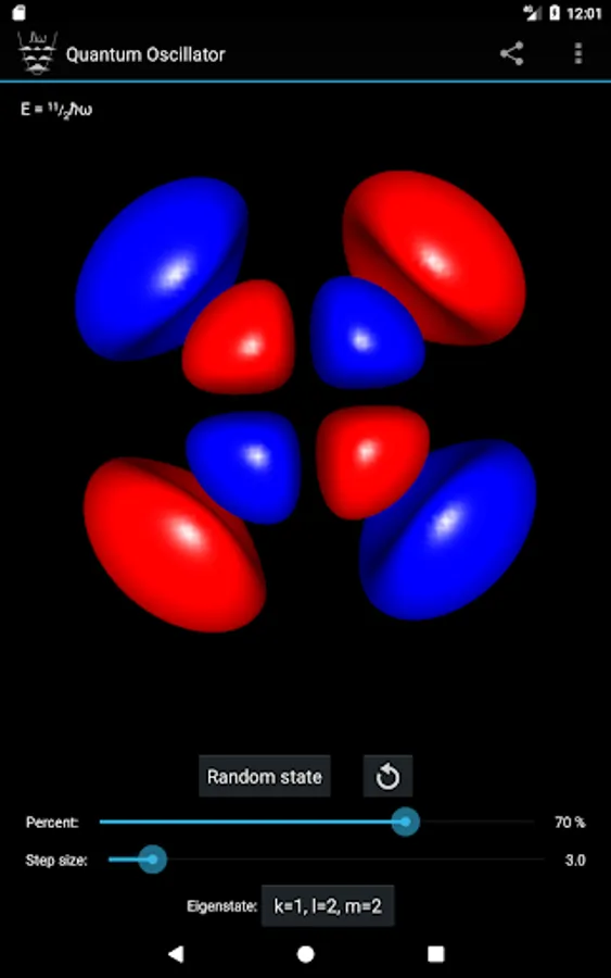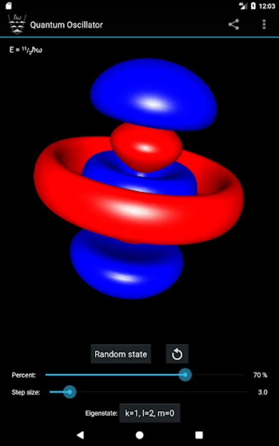 - Select the eigenstate by specifying the quantum numbers k, l and m, or pick a random one.